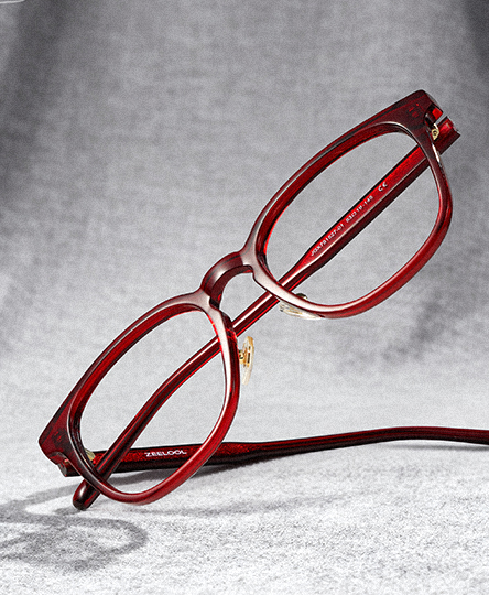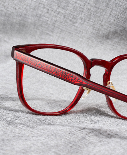 Hailey ist eine Vollrand-Brille mit quadratischem Rahmen aus hochwertigem rotem Acetat, ausgestattet mit verstellbaren Nasenpads für eine individuelle und bequeme Passform. Die sanft retro-inspirierte quadratische Form schmeichelt den meisten Gesichtsformen, während die vom Navajo-Totem inspirierten Details und durchsichtigen Nieten einen subtilen, künstlerischen Akzent setzen.
